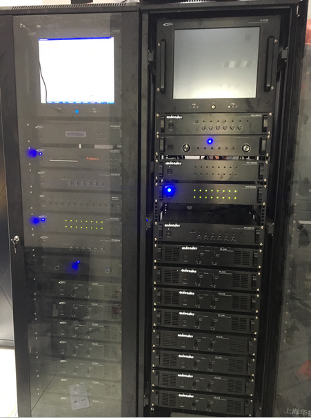 各中心广播机房:监控中心广播机房控制室设置系统服务器、音源设备、广播寻呼话筒、桌面式远程网络话筒、四通道IP网络解码终端、双通道广播功放、消防矩阵器、电源时序器、主备功放切换器、有源监听音箱等设备。