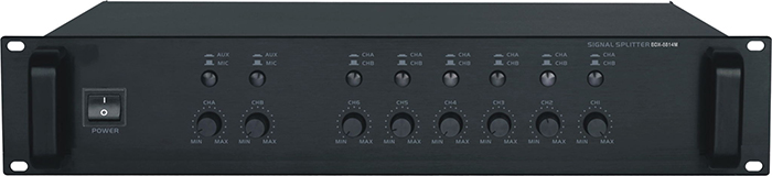 6路音频输入,每音量可独立调节,2路音频输出